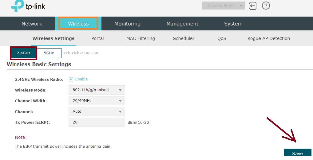 4: Press OK button save settings for 2.4 GHz in TP-Link EAP225.
