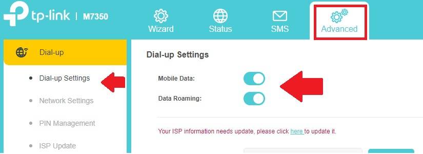 TP-Link M7350 4G Hotspot Router Enable Roaming and Mobile Data