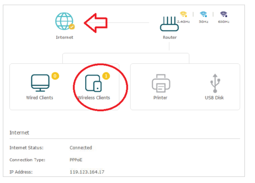 To check your internet connection, click Network Map on the left of the page. After the connection succeeds, the screen will display as follows.