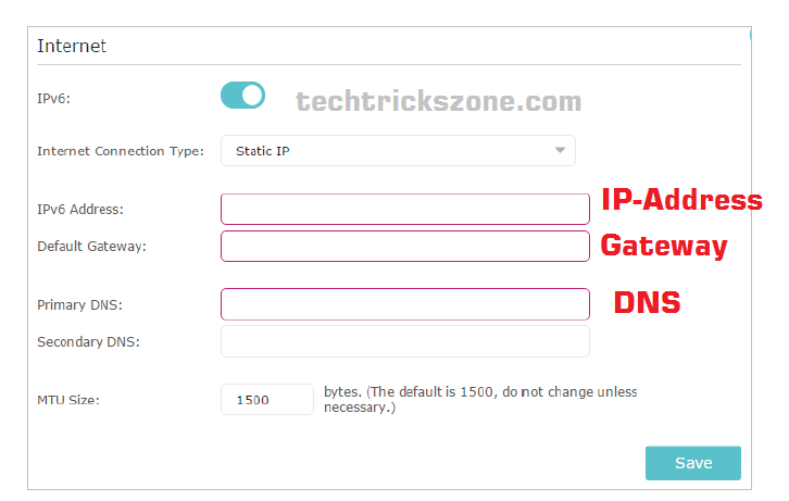 - Static IP: If your Internet Provider gives you IP address, Gateway, and DNS details choose this option