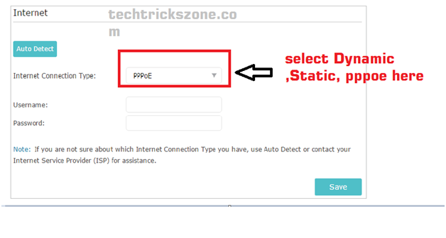 - PPPoE: if your internet work on a Dial-up connection and you got a username and password from ISP please select this option and proceed with the configuration.