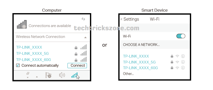 b ) Click the network icon of your computer or go to Wi-Fi Settings of your smart device, and then select the SSID to join the network.