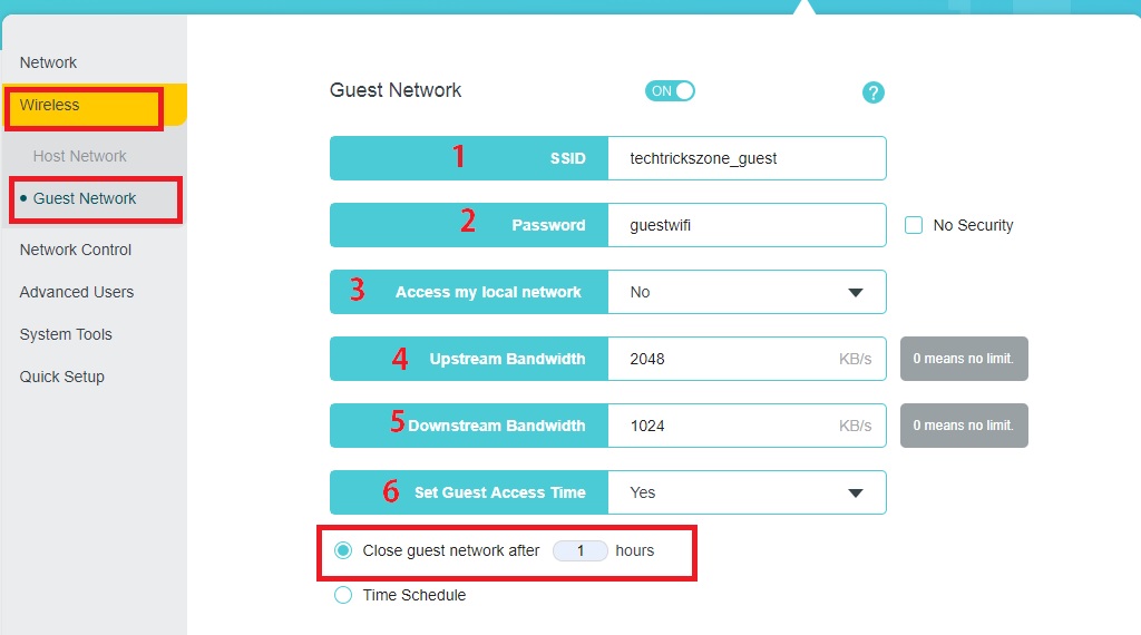 Close Guest network after – 1 hour (this is the time limit for guest wifi internet access.
