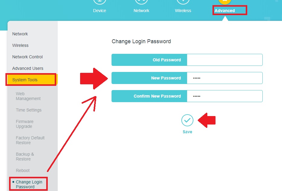 3- Password– type the WiFi password in this box ( this key will use to connect mobile and laptop to use wifi internet with this wireless router)