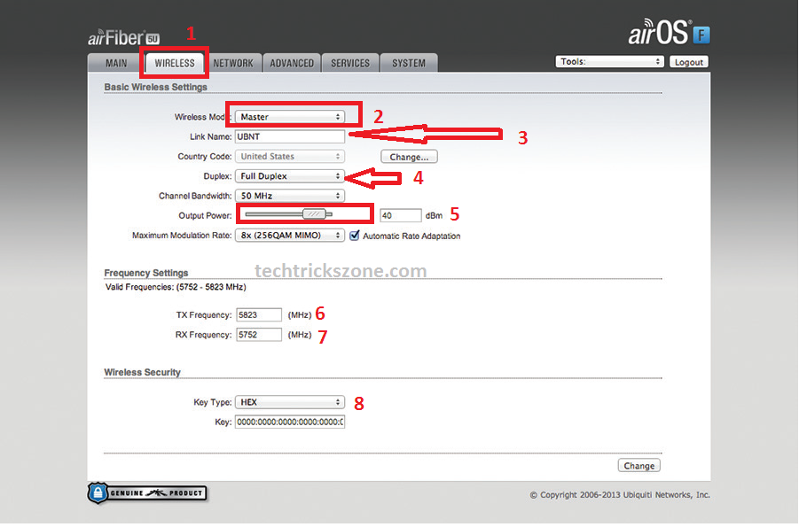 - TX Frequency. This must match the RX Frequency on your other airFiber radio.