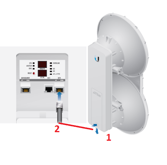- Slide Down the airFiber back cover to access Ethernet ports.