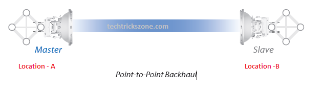 In point-to-point connectivity, two airFiber radios will be configured. One airFiber radio will be configured with Master mode for Location A and the Second airFiber radio will be in slave mode for Location B