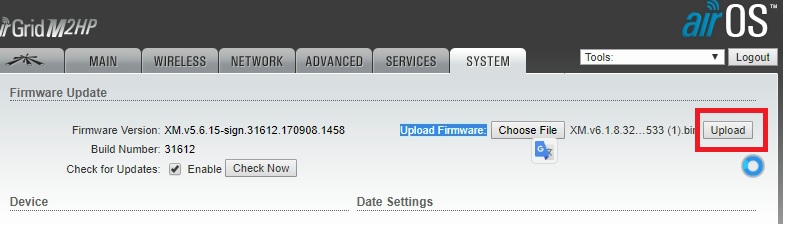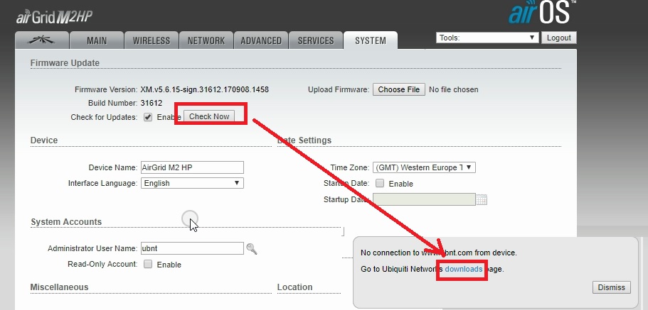 UBNT airGrid M series Firmware upgrade without internet