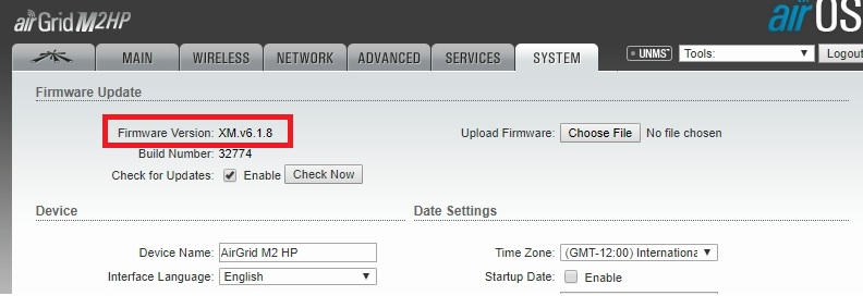 To update new firmware in your Ubiquiti device check the installed firmware in the device to make sure it is required the update.