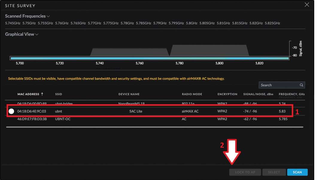 2: Click the SELECT button to scan the AP device.