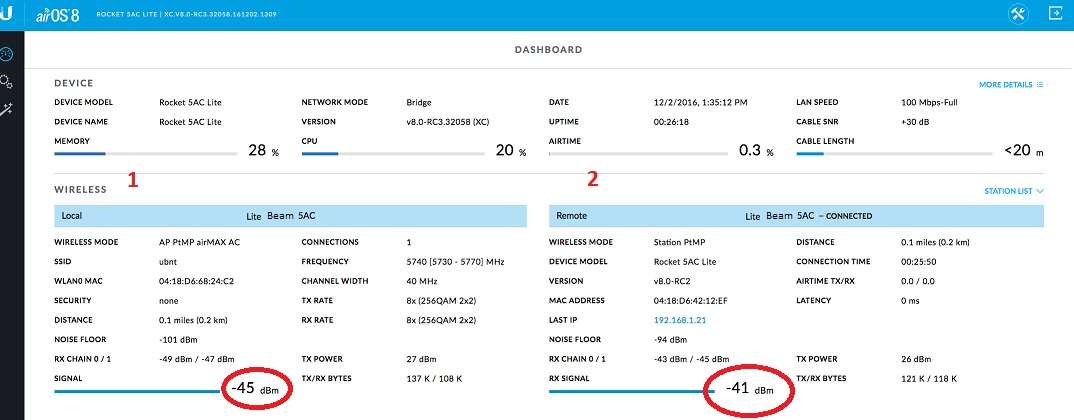 UBNT Wireless Point to Point Connection Status