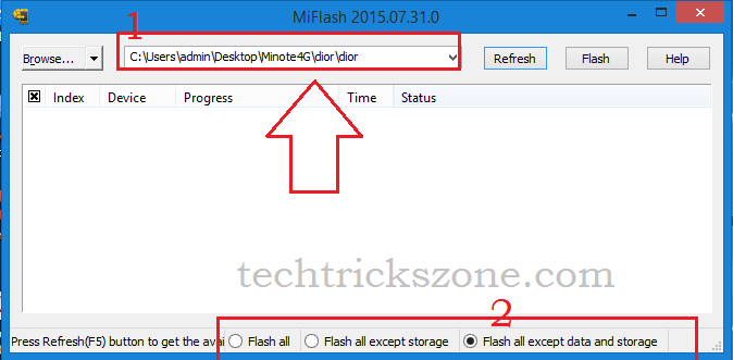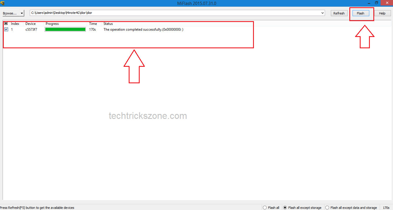 2: Select the option: Flash All, Flash All except Storage, Flash all except data and storage.
