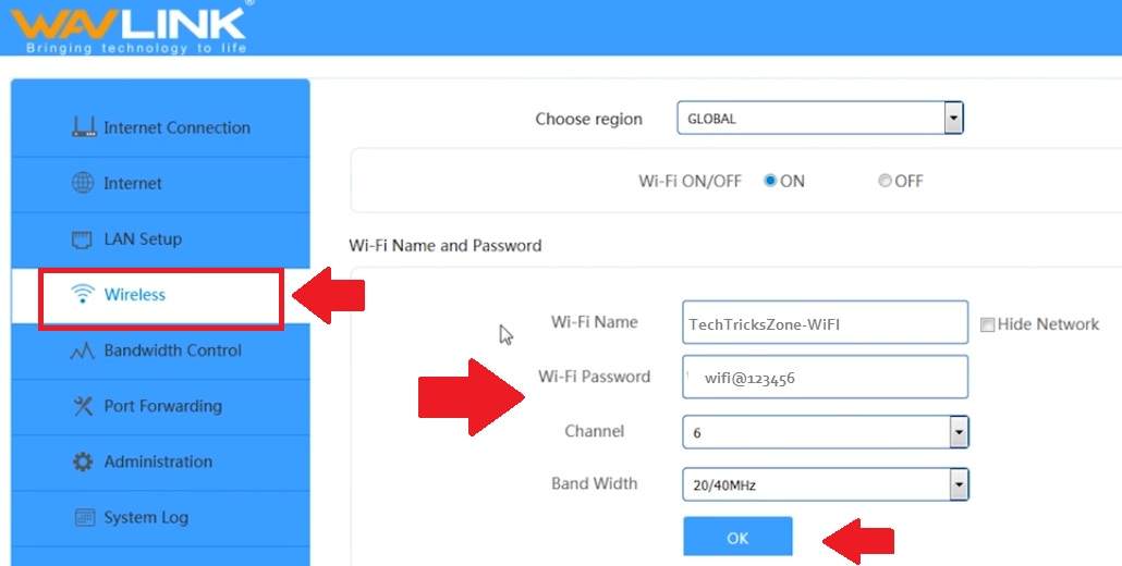 Now change the default WiFi name and password for the wavlink access point with your own WiFi name and password.