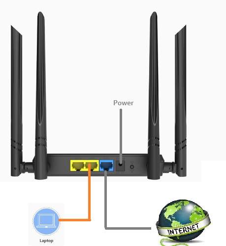 The physical connection needed to setup the Wavlink router first time in router mode.