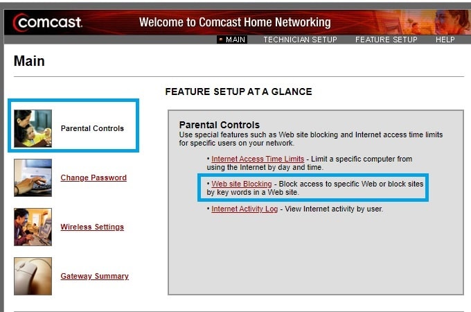 Add the website list those are not useful for your kids using the option available for Website Block in Comcast Xfinity cable modem. Use the security features to ensure the security of home internet and wifi network from unwanted access. Every router support firewall content filtering and port block features.