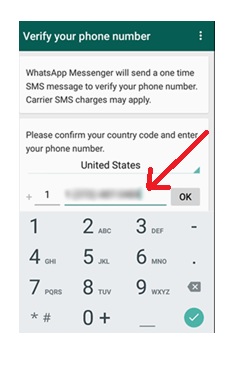4- Go to Whatsapp and use the number to verify the WhatsApp account.