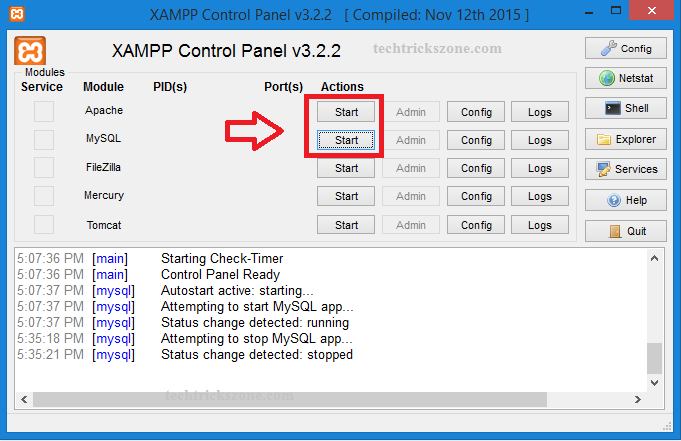Click MySQL Start button