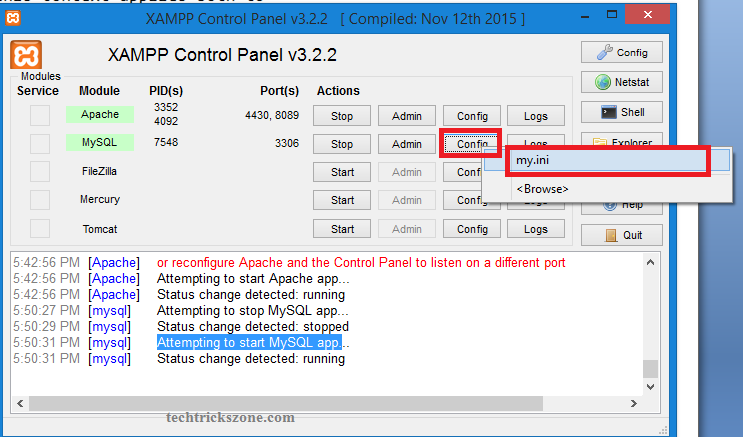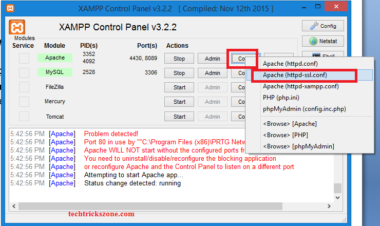 Right-click on the Config button in front of Apache.