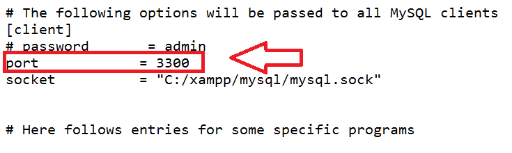 My.ini file will open on notepad. Find the port setting and change the port number to a free port number.