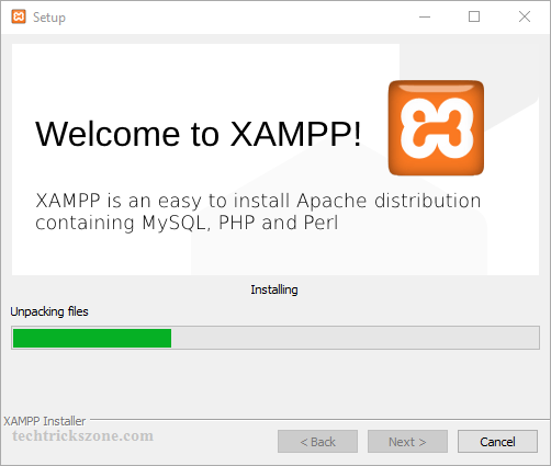 XAMPP server will start the installation of all selected components as per choose last steps.