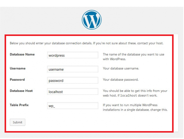 WordPress Localhost installation Wizard.